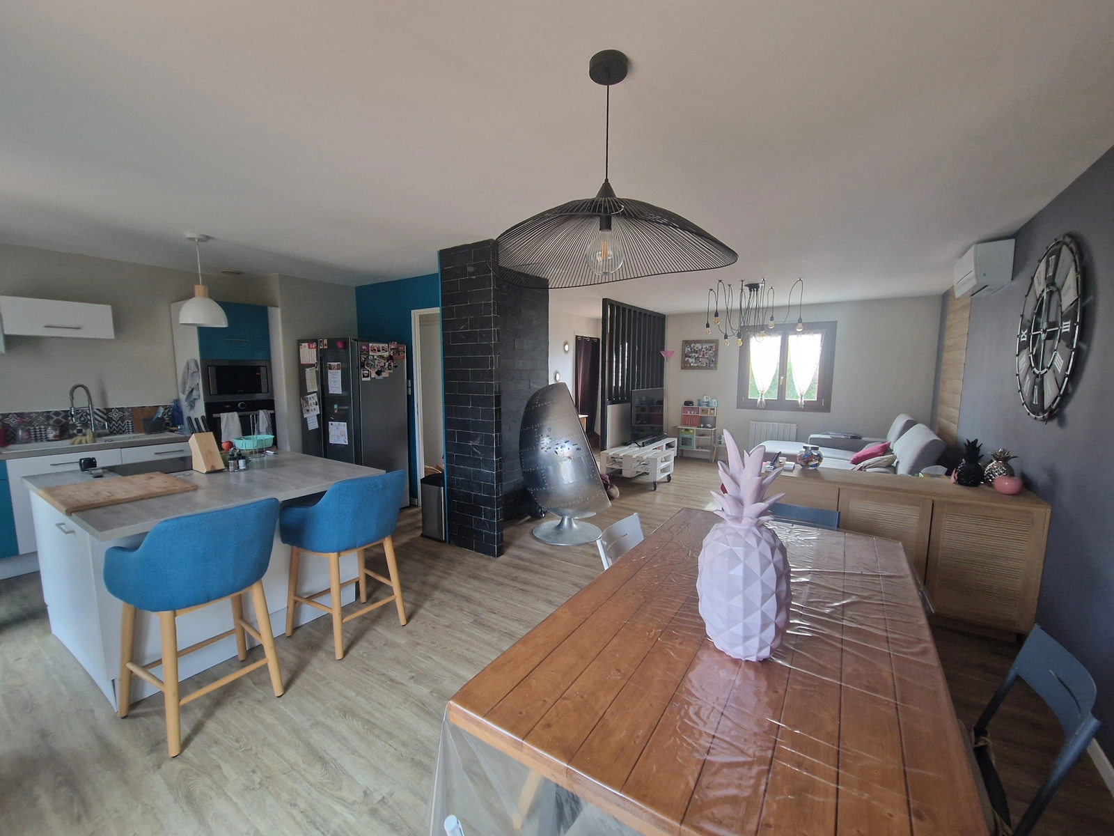 Les combles aménagés en 2000 offrent une vaste mezzanine, idéale pour créer deux chambres supplémentaires ou profiter d'une très grande salle de jeux lumineuse selon vos besoin.